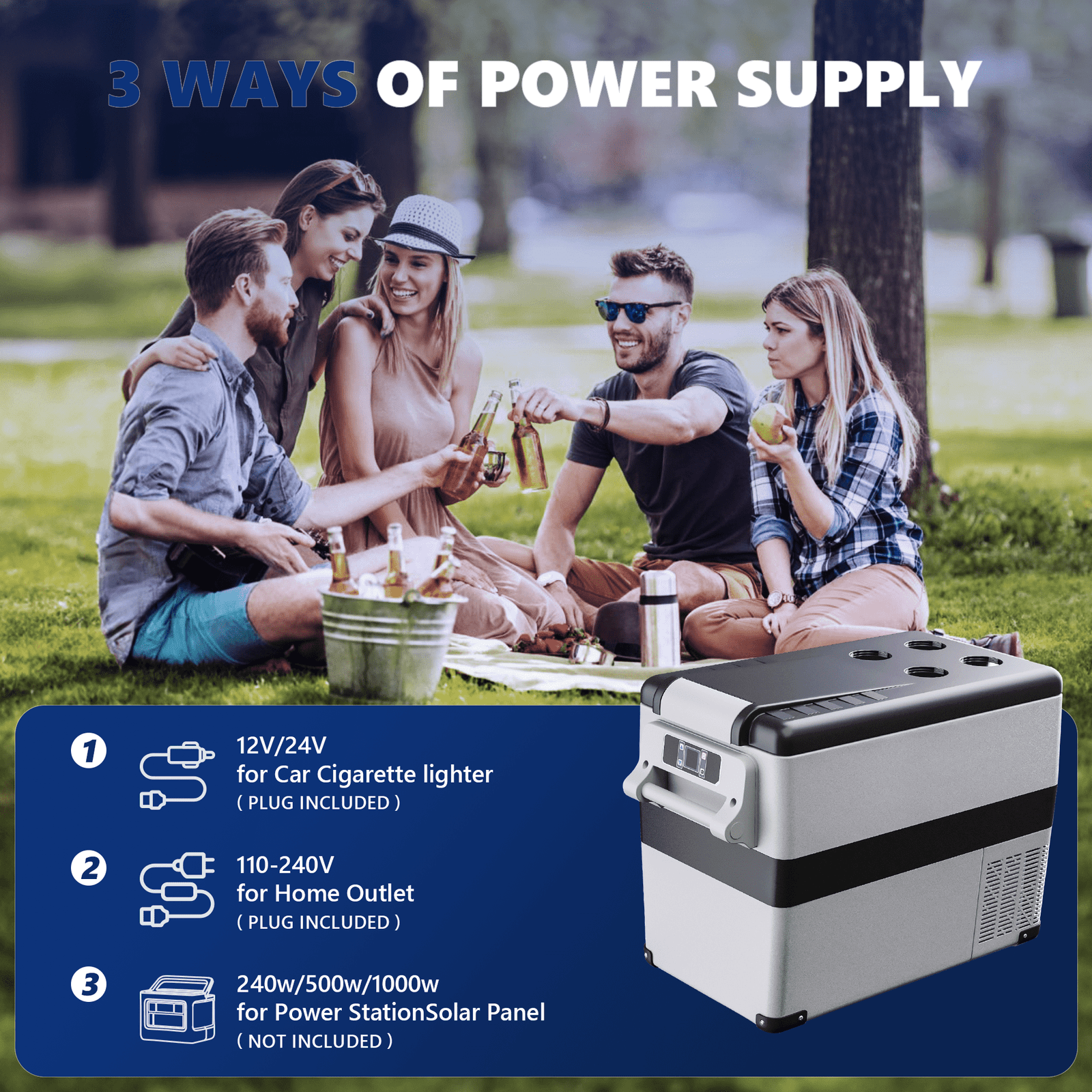 • Equipped with both 110/240V AC and 12/24V DC adapters, our 12 volt refrigerator ensures versatile use at home or on the road. It features three levels of battery protection to prevent overloading or short-circuiting, providing a worry-free experience when using the 12 volt fridge.