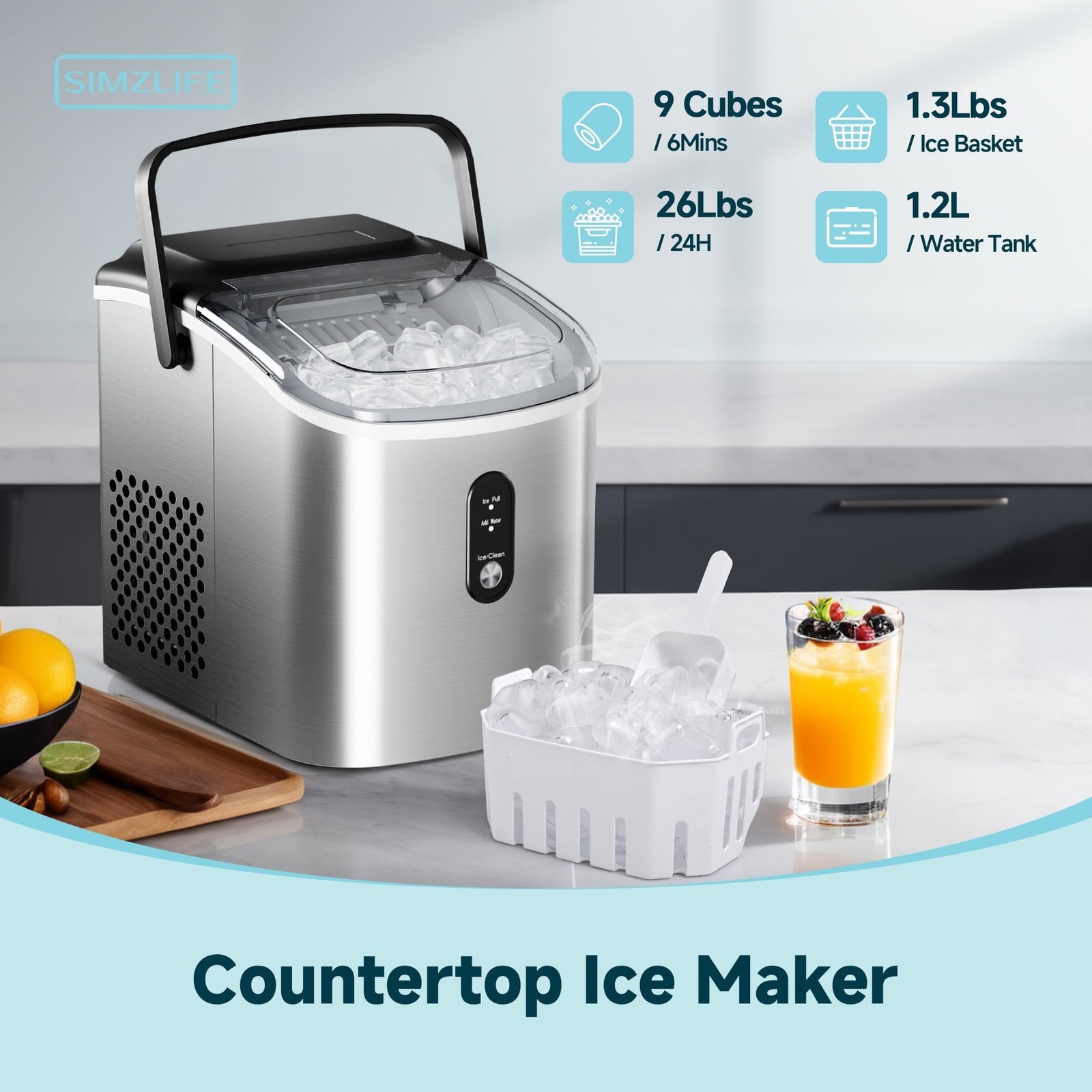 This portable ice maker operates at a very low noise level, ensuring a peaceful environment for you to enjoy your space undisturbed. With impressive efficiency, our ice maker produces 9 rounds of ice in just 6 minutes and up to 26 pounds of ice every 24 hours, ensuring a steady supply for all your needs. Plus, this compact ice maker is self-cleaning, giving you more time to savor the finer things in life. With the Simzlife Portable Ice Maker, making refreshingly cold drinks has never been easier.