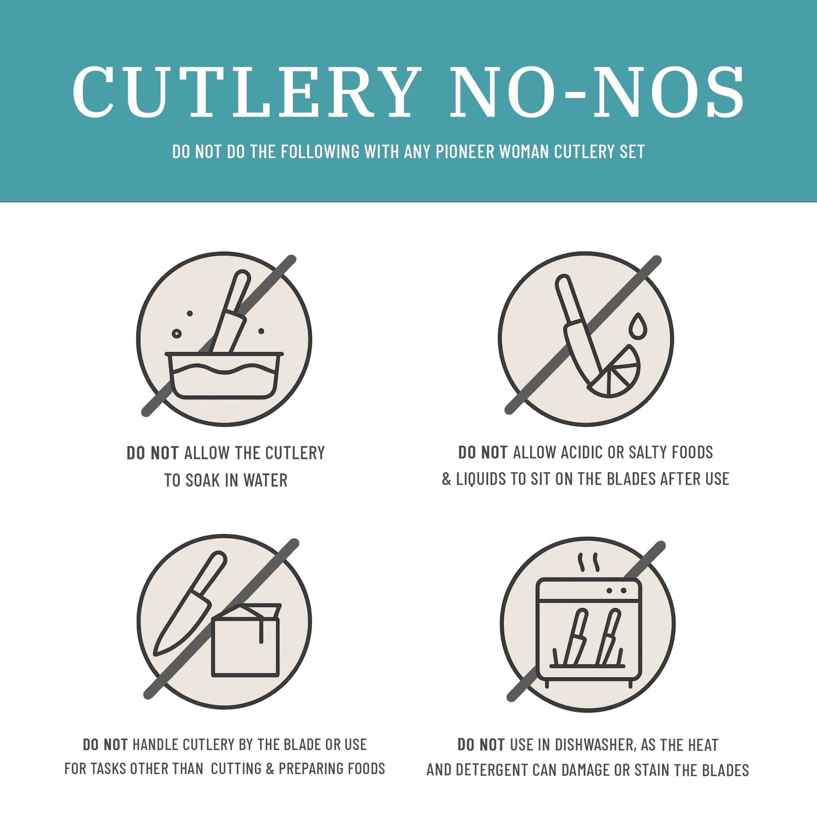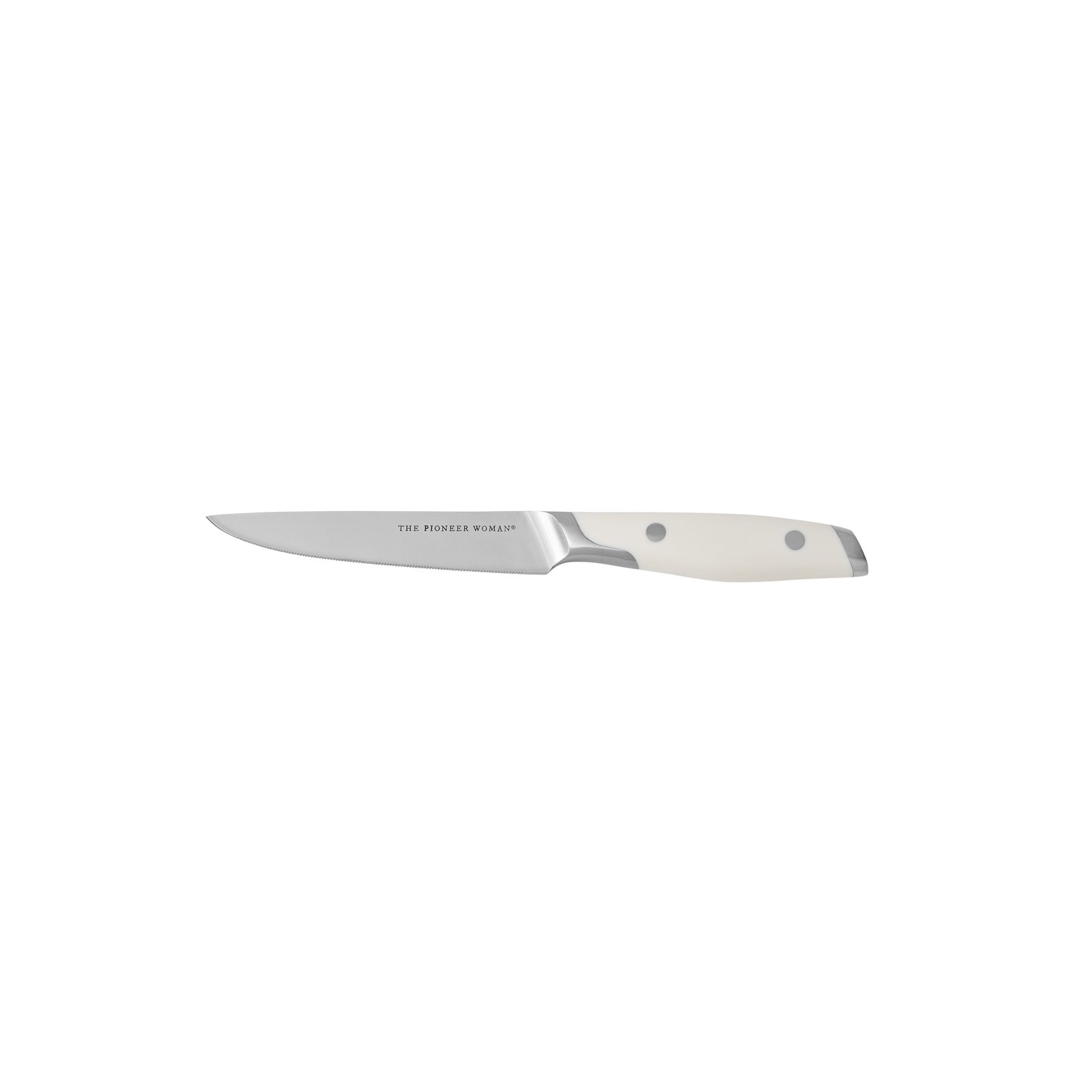 The Pioneer Woman 14-Piece Knife Block Set will quickly become one of your most essential kitchen tools. The set includes a wide variety of knives for every kind of use, including a chef’s knife, bread knife, Nakiri knife, utility knife, paring knife, kitchen shears, bird’s beak knife, and steak knives. Whether you are chopping, cutting, or slicing, you’ll find these knives indispensable. The blades offer the durability of stainless steel and have ergonomically designed handles for comfortable use. After use, we recommend hand washing to extend the life of the blades. The set comes with a beautiful wood block for easy storage. Bring some of Ree’s favorite knives to your home today with The Pioneer Woman 14-Piece Knife Block Set.