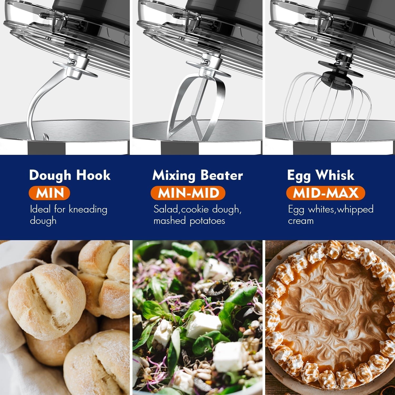 WHALL Stand Mixer, 12-Speed Tilt-Head Kitchen Mixer, for Baking Bread, Cakes, Cookie, Pizza, Salad, Electric Food Mixer with Dough Hook/Wire Whip/Beater, Stainless Steel Bowl
